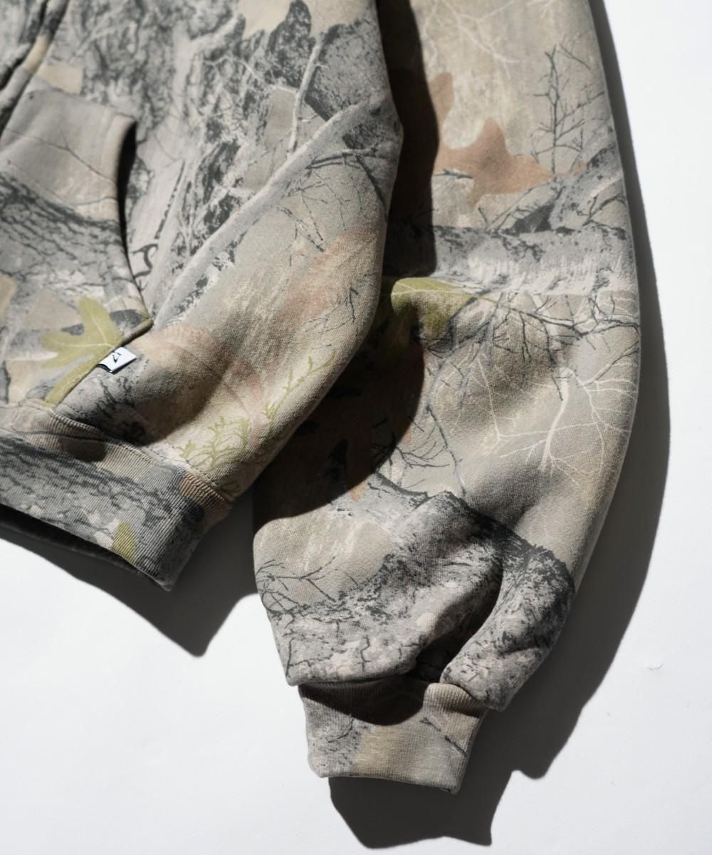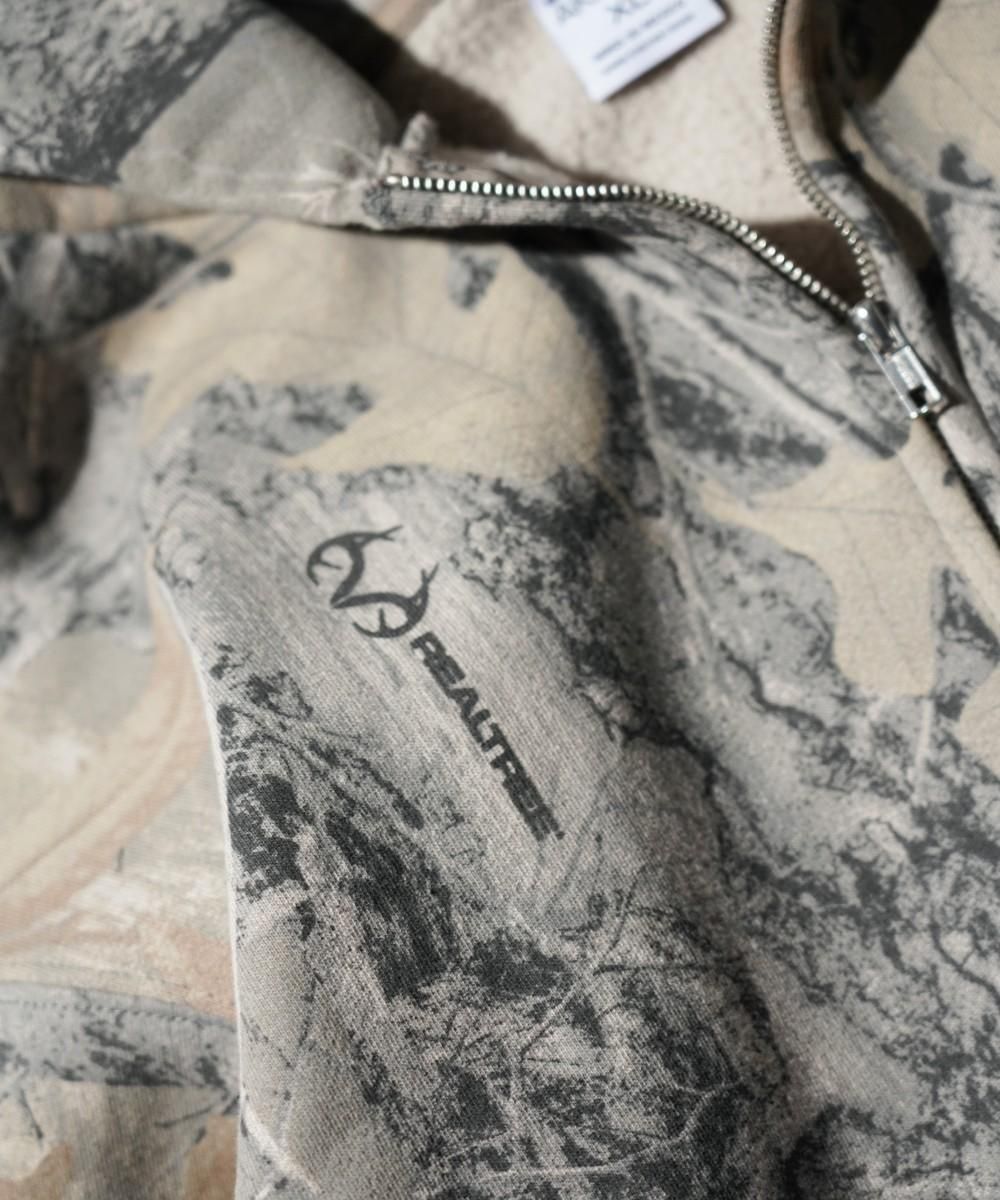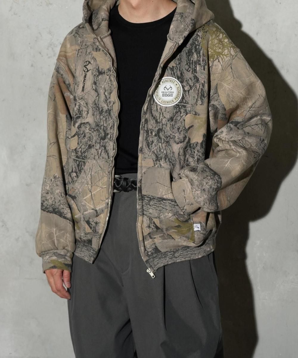 AKIMBOがRealtree®と協業し、Realtree® Edge Camo をベースに再構築したカスタムカラーウェイを、オリジナルジップフードボディに落とし込んだ一着。